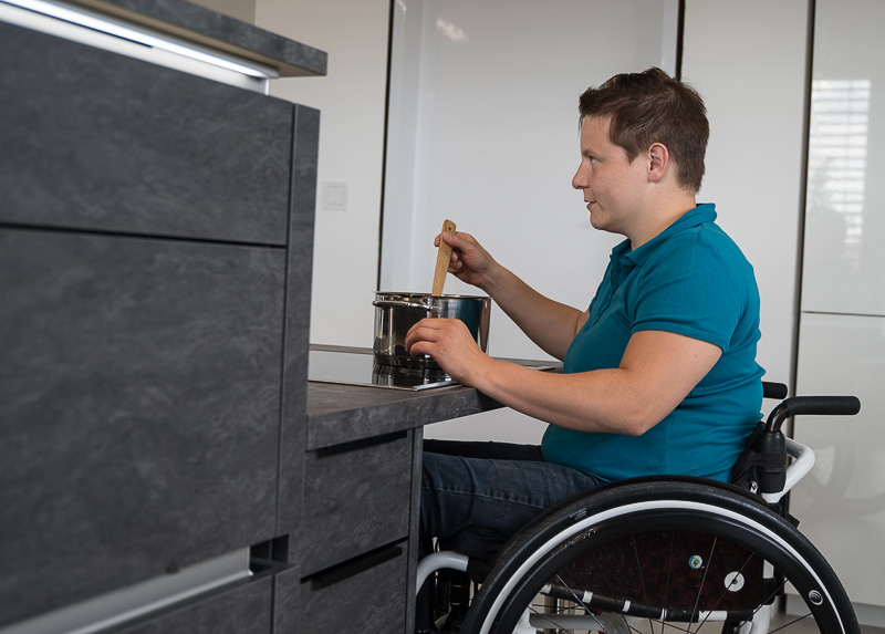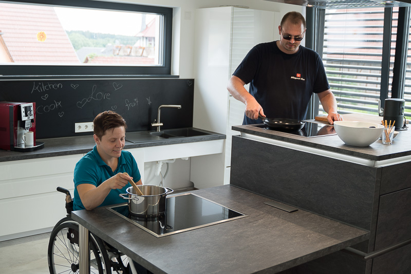 Für eine Kundin und den auf barrierefreies Bauen spezialisierten Architekten Uli Müller durften wir eine barrierefreie Küche planen und in die Tat umsetzen. Dabei war die Zugänglichkeit mit dem Rollstuhl zum Kochfeld und Spülbereich besonders wichtig, aber auch die einfachen Anschlussmöglichkeiten für Elektrogeräte.