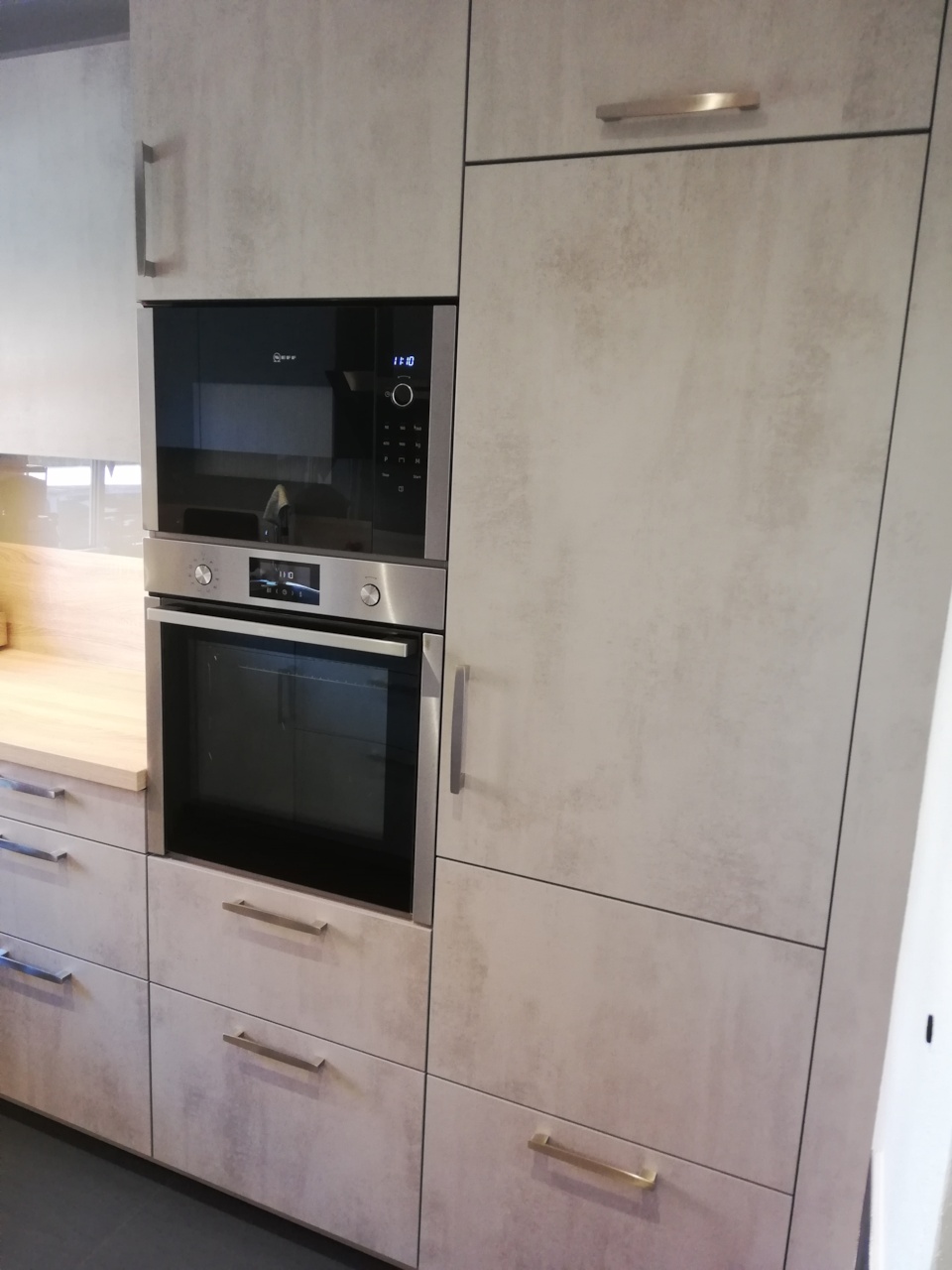 Hier wird jeder Winkel optimal genutzt. Die Küche reicht bis zum Eingangsbereich und ermöglicht dennoch einen breiten Durchgang und in der Ecke bietet der Topfschrank idealen Stauraum.