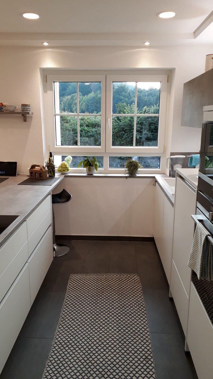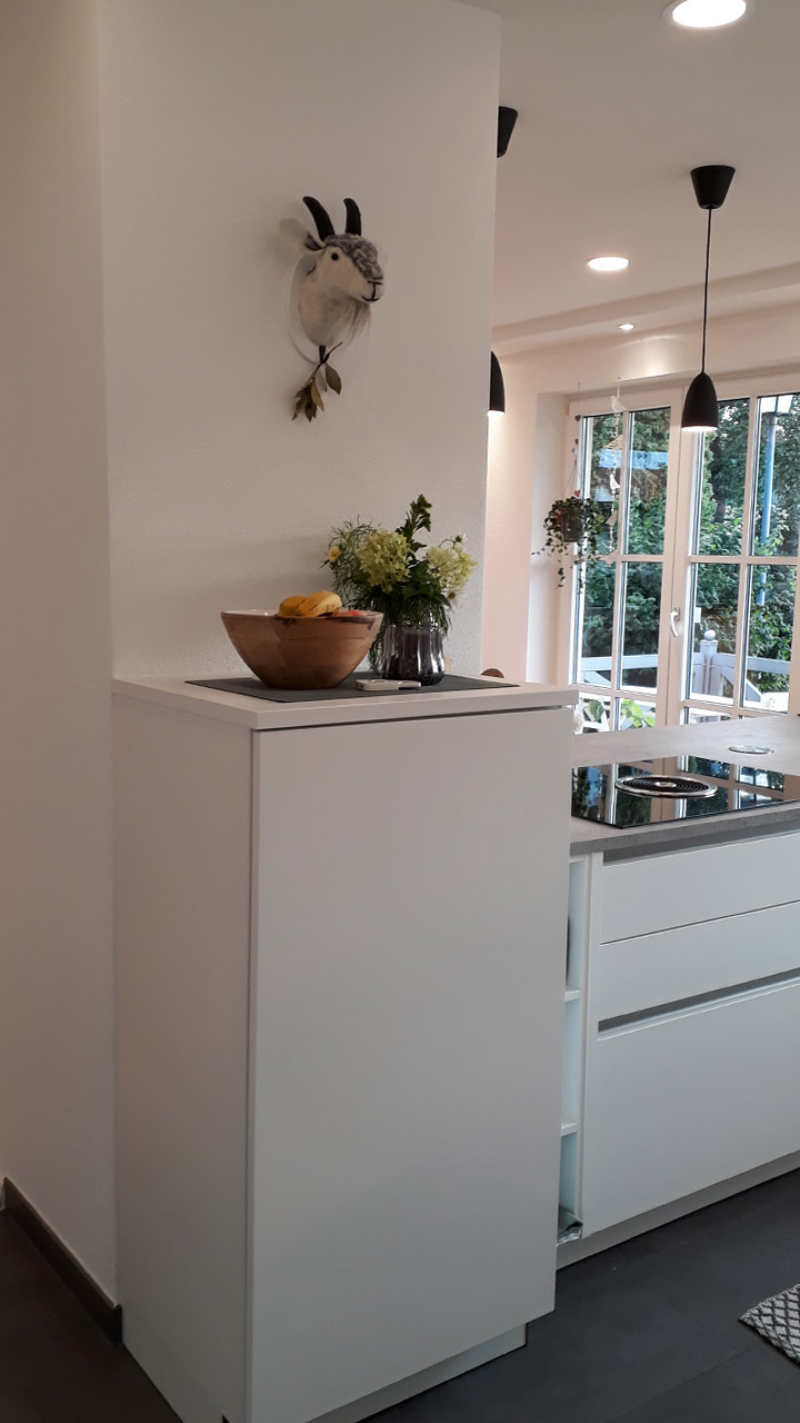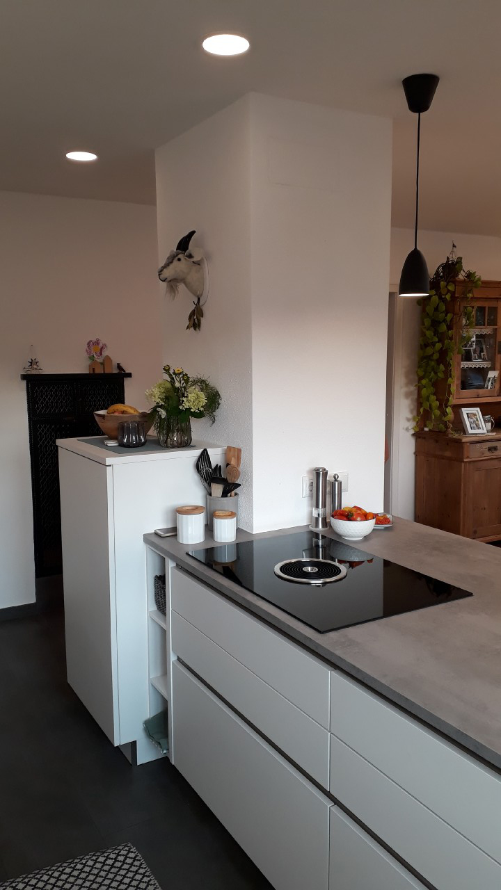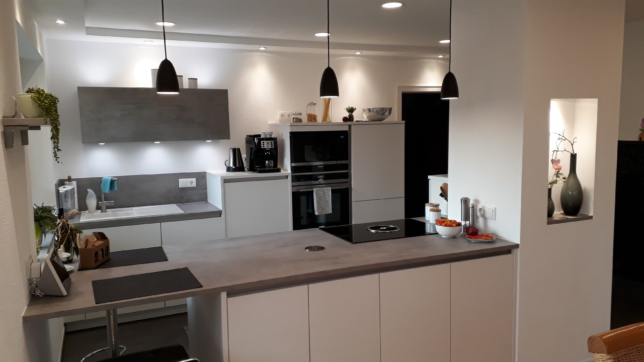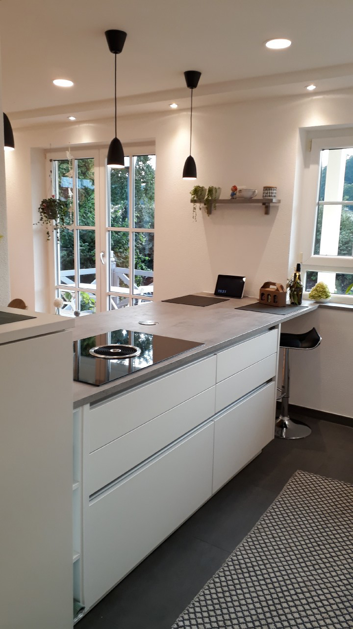 Für die neue Küche von Familie Martin aus Ebern wurde der Raum geöffnet und die Küche so geplant, dass man an der großen Insellösung sowohl sitzen als auch arbeiten kann.