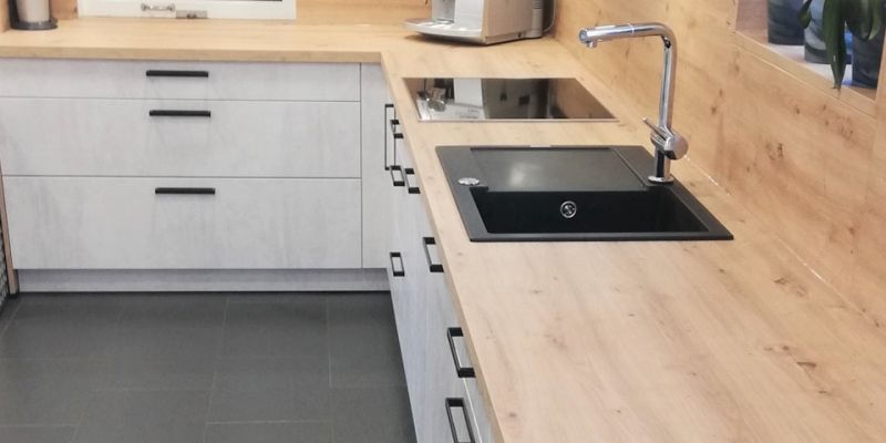 Ein weiteres Highlight ist die Unterbauspüle mit verschiebbarer Ablage. Dazu kommt ein verschiebbarer Handtuchhalter für grifflose Küchen.