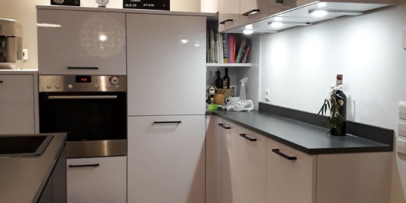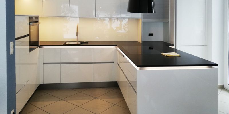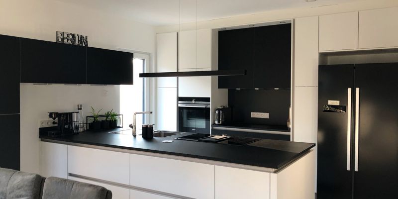 Der Glanz dieser Küche, die in Coburg realisiert wurde, bezieht sich nicht nur auf die hochglänzende Echtlack-Front mit mehrschichtigem Lackaufbau, sondern auch auf all ihre Eigenschaften.